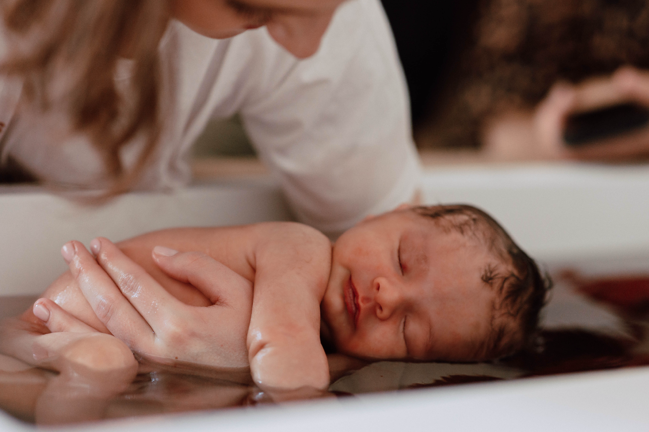 J’ai eu l’immense privilège d’être formée par Sonia Krief elle-même, qui explique très justement que, « par l’émotion que provoque ce bain, c’est aussi l’occasion de libérer la jeune mère d’un vécu difficile de grossesse, d’accouchement ou d’une déception de mode de naissance provoquant des difficultés à s’impliquer totalement dans la relation avec son bébé ».